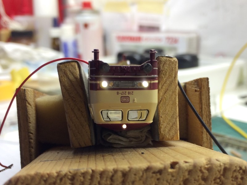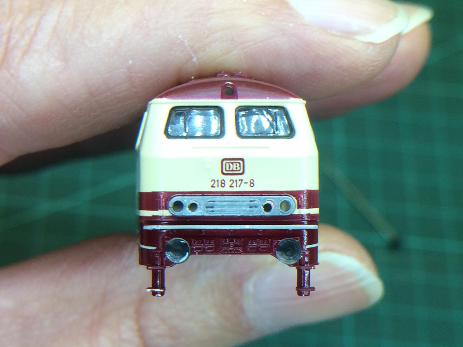 Om hier wat aan te doen, heb ik de stoute schoenen aangetrokken, en een dieselloc van de Baureihe 218 in Citybahn uitvoering (Fleischmann Piccolo nr. 7239) onder handen genomen.