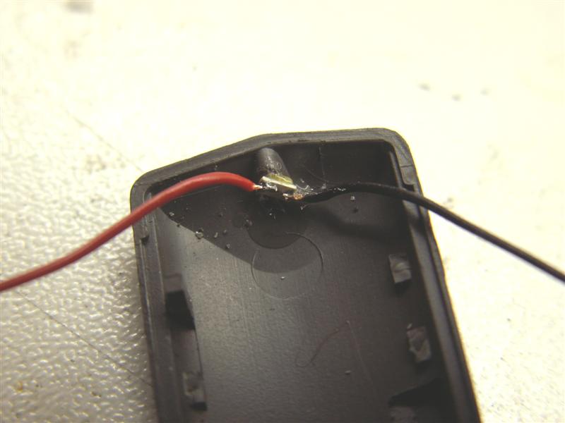 Na het openen van de kap en het verwijderen van het gloeilampje, doet de eerste meevaller zich voor: de 3mm led past precies in de opening waar het lampje heeft gezeten. Dus er hoeft niet gezaagd, gevijld of gefreesd te worden!
