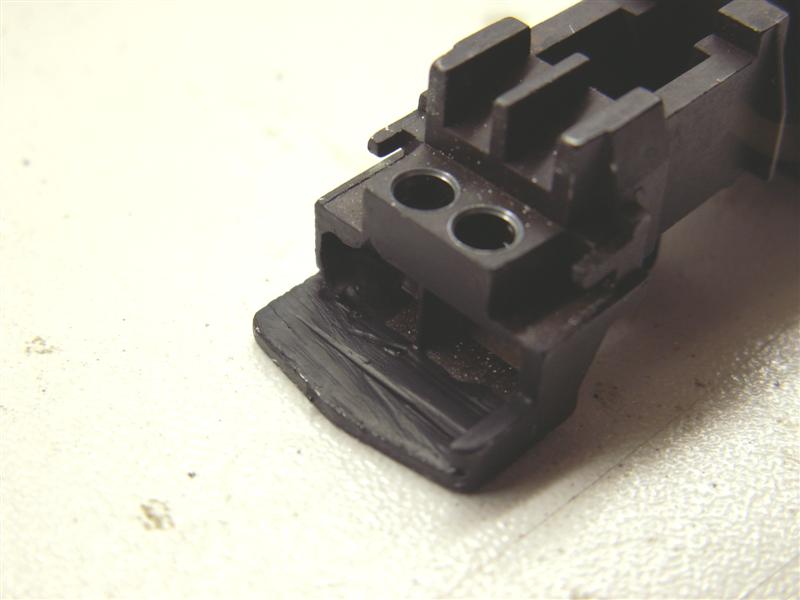 Volgende stap is natuurlijk om te zorgen dat het licht van de te realiseren sluitseinen de kap uit kan, dus worden de aanwezige 'beige sluitseinen' uitgeboord met een 1mm boortje.