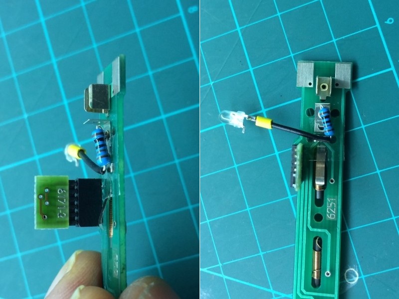 Ook hier bracht een 3mm ledje met voorschakelweerstand uitkomst.
